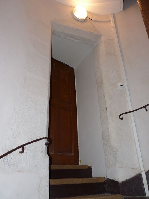 Escalier en vis, porte d'accès aux pièces du second étageImmatriculation