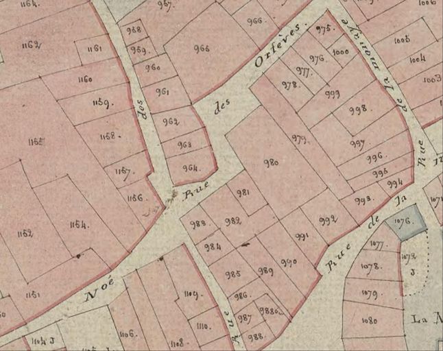 Plan cadastral 1807. Section I3 : ville close, rue des Orfèvres. AD Morbihan 3 P 297/22.Immatriculation