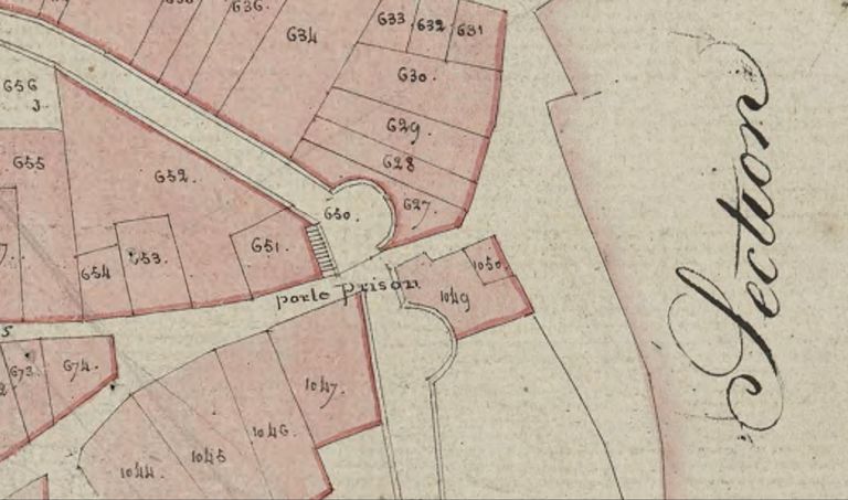 Plan cadastral 1807, section I3, détail porte Prison. AD Morbihan 3P297/22.Immatriculation
