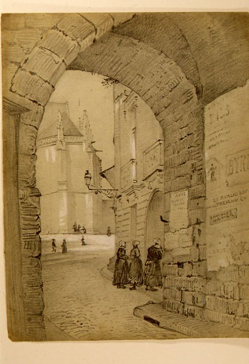Porte Prison, dessin par Charles de Lambilly, milieu 19e siècle. Musée des Beaux-Arts, Vannes.Immatriculation