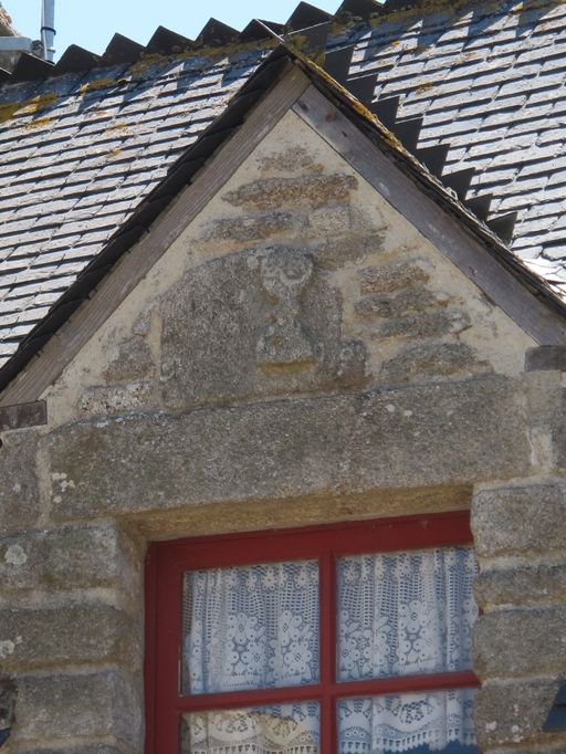 Tréviguet, maison de prêtre du 17e siècle : le pignon de la lucarne portant un calice (état en 2010)Immatriculation