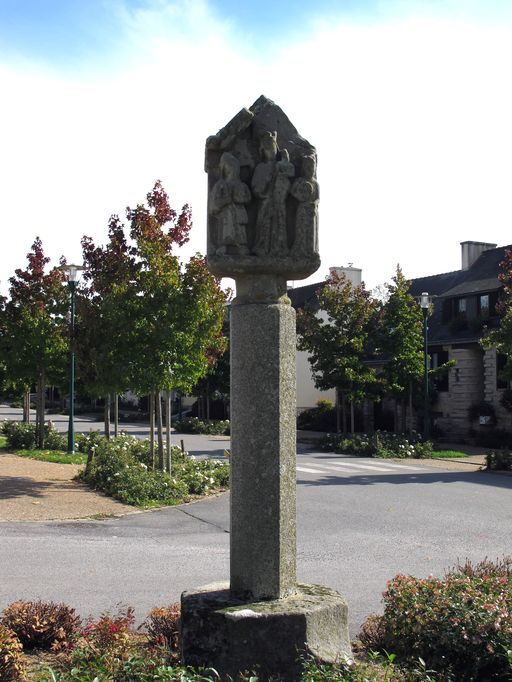 Croix monumentale : face portant la Vierge à l'Enfant entre saint Jacques et sainte Catherine (état en 2011)Immatriculation