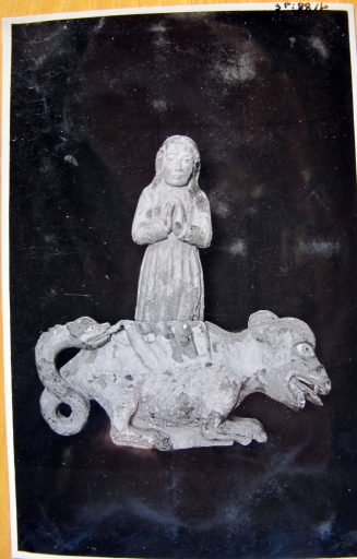 Statue de sainte Marguerite, vers 1940. Photo Godineau, Conservation des objets d'art du Morbihan, A.D. Morbihan, 3 Fi 88/4Immatriculation