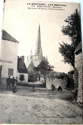 Entrée du bourg. Chapelle Notre-Dame. Vue de la tour. (Coll. Madec, cliché Bocquenet, A.D. Morbihan, 9 Fi Kervignac)Immatriculation