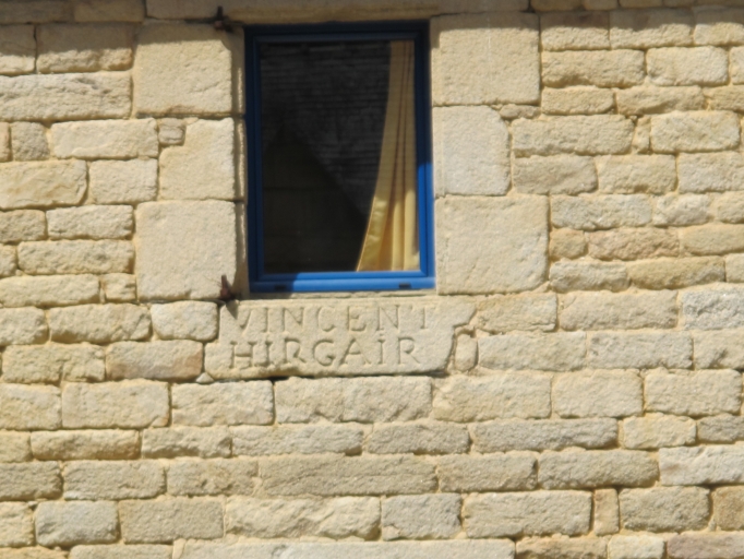 Corps de logis principal, élévation sud, inscription sur l'appui de la fenêtre de l'étage au-dessus de la porte estImmatriculation