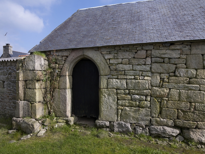 Loguivy-Plougras, Kerguélen : dépendance (n° 2), façade ouest, détail de la porteImmatriculation