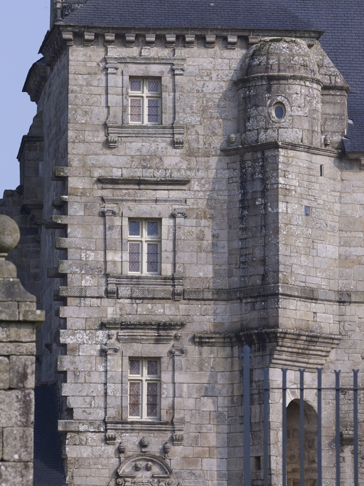 Loguivy-Plougras, Kerroué Braz : château de Kerroué, vue de détail de la façadeImmatriculation