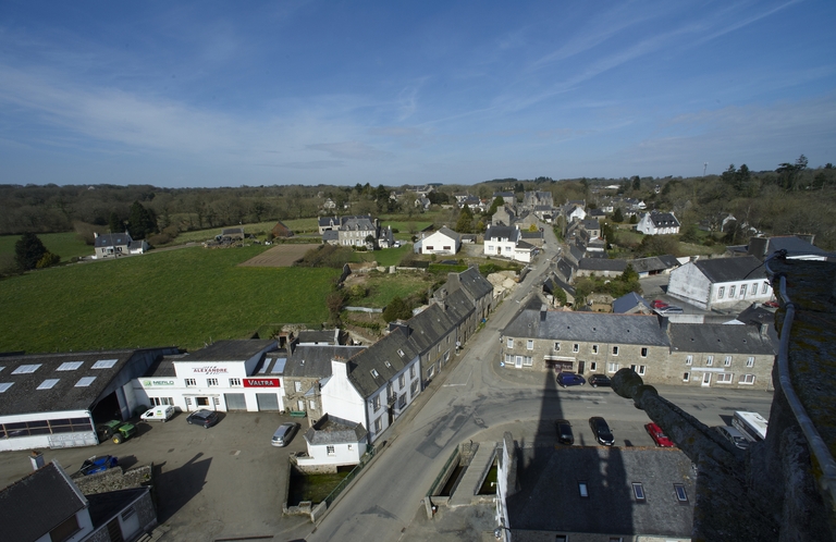 Loguivy-Plougras, église paroissiale Saint-Emilion : vue du bourg depuis le clocherImmatriculation