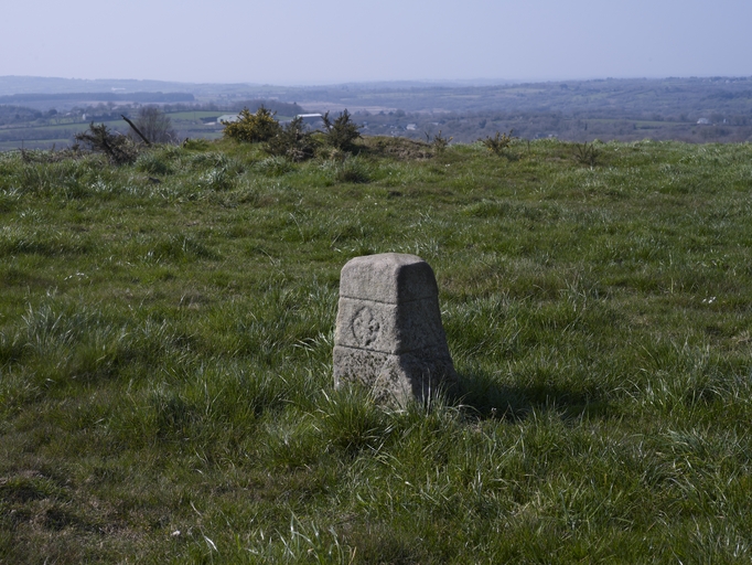 Borne n° 1, face sud ornée d'une fleur de lys (face éclairée) et face nord gravée d'un triangleImmatriculation