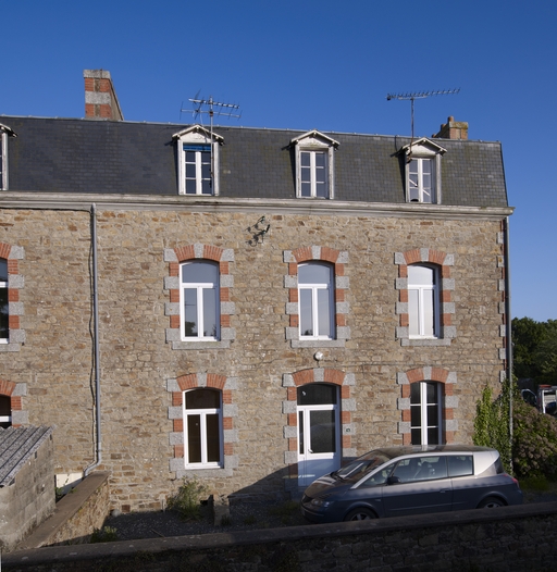 Pluzunet, le bourg, 8 rue Louis Guégan : école primaire publique, logements des instituteurs, élévation nordImmatriculation