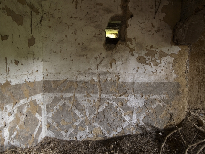 Pluzunet, Kerlestran : ferme, étage, cheminée sud, peintures murales (ou fresques ?) à motifs géométriquesImmatriculation