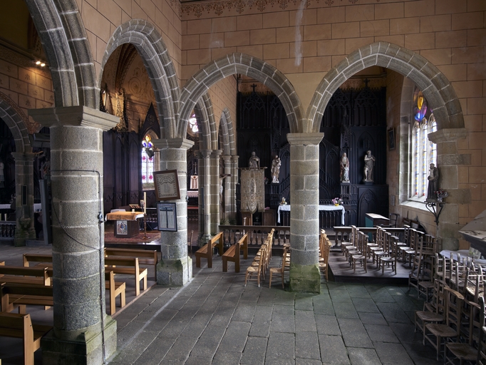 Pluzunet, le bourg, place Marc'harit Fulup : église paroissiale Saint-Pierre, vue intérieure, bas-côté sudImmatriculation
