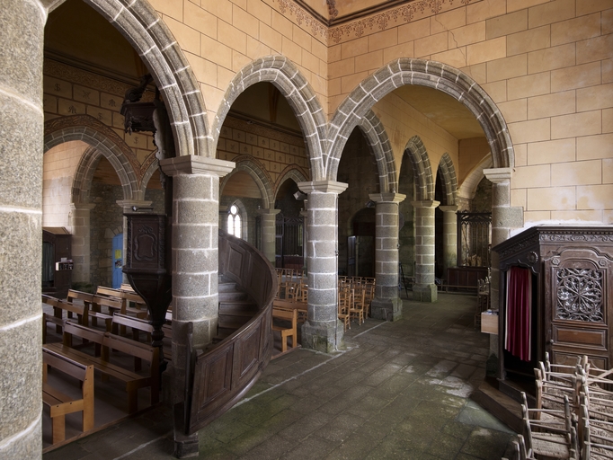 Pluzunet, le bourg, place Marc'harit Fulup : église paroissiale Saint-Pierre, vue intérieure, bas-côté nordImmatriculation