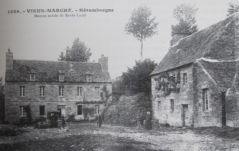 Le Vieux-Marché, Keramborn : vue générale de la ferme (logis respectivement datés de 1798 et 1826), carte postale (collection particulière)Immatriculation