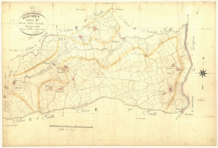 Feuille D2 du cadastre ancien de la commune de Le Vieux-Marché, 1835Immatriculation