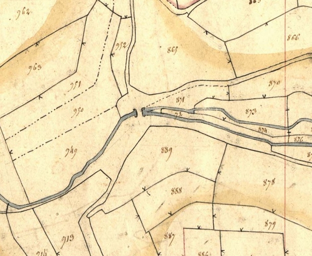 Extrait de la feuille D3 du cadastre ancien de la commune de Le Vieux-Marché, 1835 : Milin ar C'hoatImmatriculation