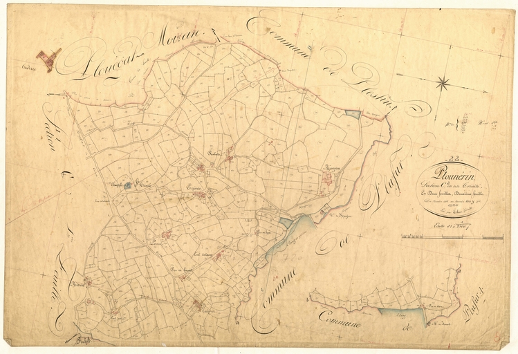 Cadastre ancien, commune de Plounérin, 1 tableau d'assemblage et 14 feuilles, 1834.Cadastre.