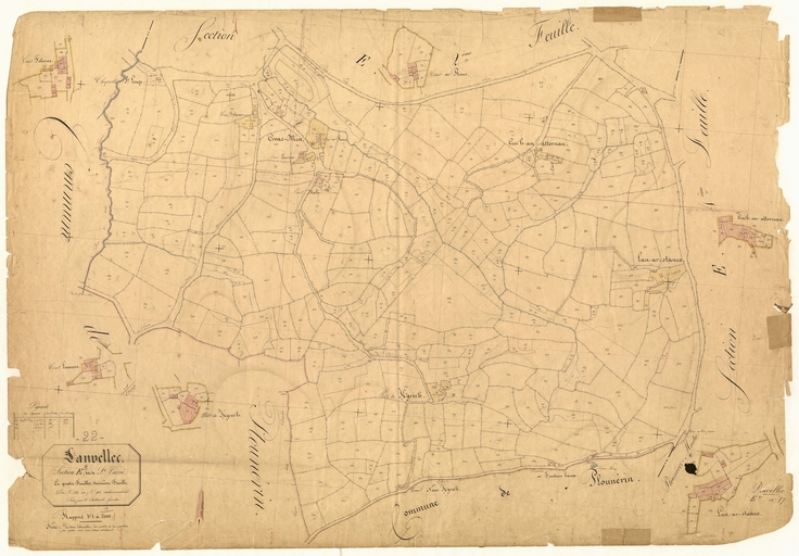 Cadastre ancien, commune de Lanvellec, 1 tableau d'assemblage et 17 feuilles, 1848.Cadastre.