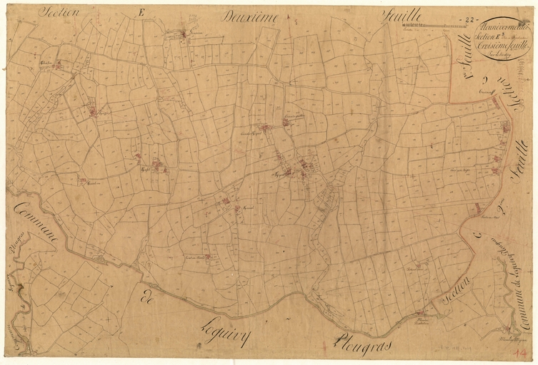 Feuille E3 du cadastre ancien de la commune de Plounévez-Moëdec, 1834Immatriculation