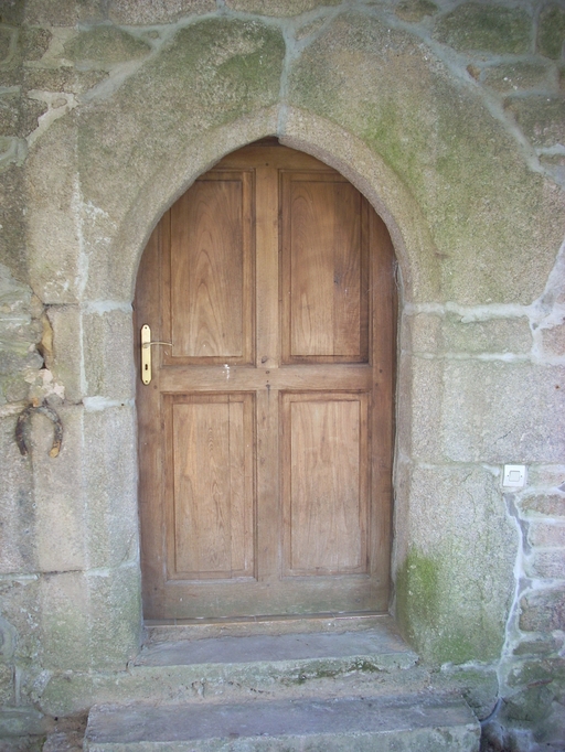 Plounérin, Scoassel : ferme, façade postérieure nord-est, porte moulurée en arc briséImmatriculation