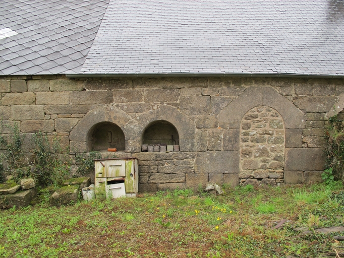 Plounévez-Moëdec, Kerderrien : logis datable du 17e déclassé en dépendance, détail (ancien mur intérieur : ?)Immatriculation