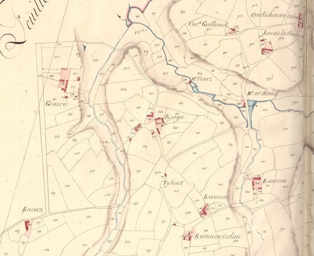 Extrait du cadastre ancien de la commune de Lanvellec, 1813 : Goasrû [Goaz Ru]Immatriculation