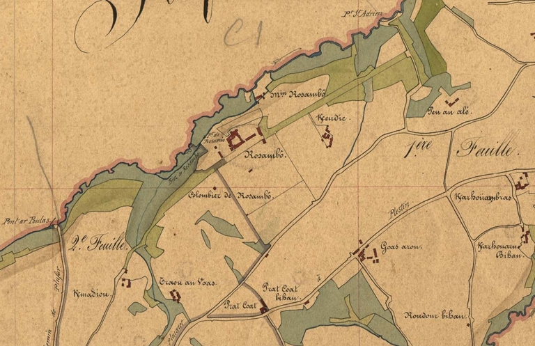 Extrait du tableau d'assemblage du cadastre de la commune de Lanvellec, 1848 : RosanboImmatriculation