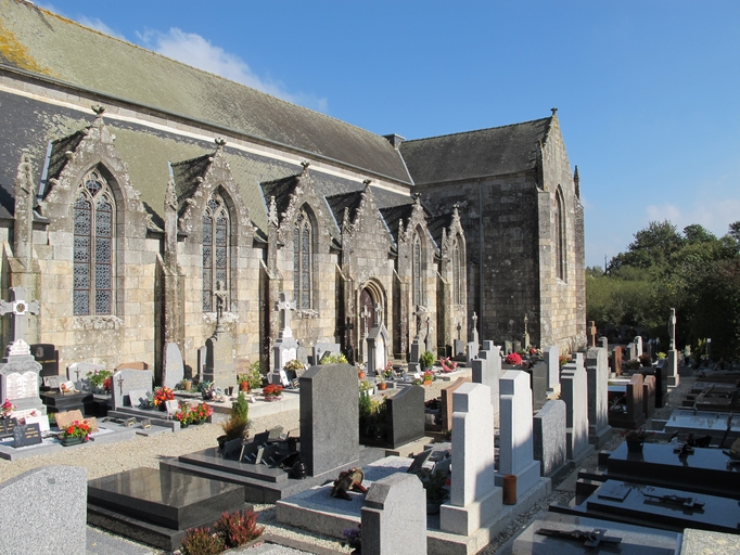 Bas-côté doté de six travées. Au premier plan : le cimetièreImmatriculation