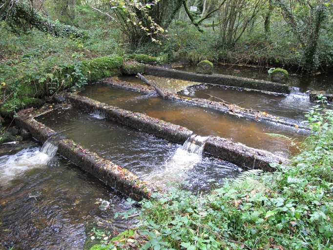 Lanvellec, Goaz Ru : échelle à poissons du ruisseau de Roscoat. La proximité immédiate de l´eau a été déterminante dans l´implantation du manoirImmatriculation