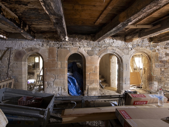 Rez-de-chaussée, mur de refend séparant la salle des pièces annexes et de l'escalierImmatriculation