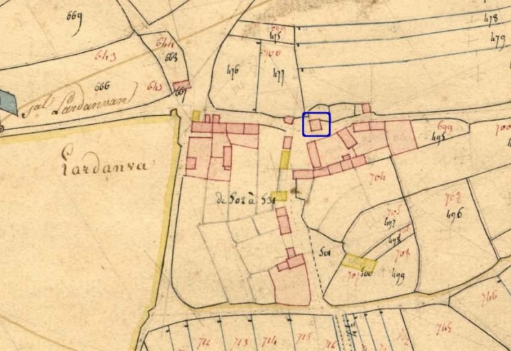 Le hameau de Lardanva en 1831. Extrait du cadastre ancien (A.D.Finistère, 3 P 282)Immatriculation