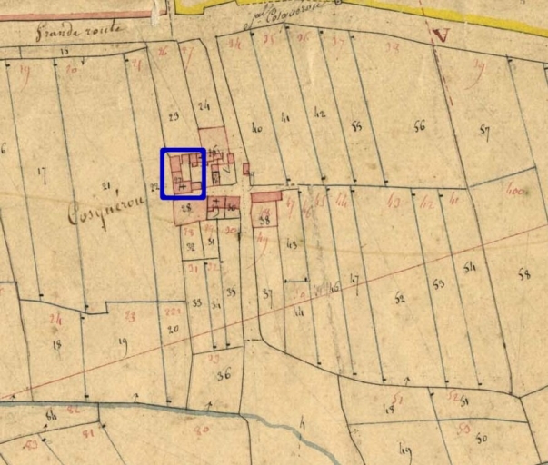 Le hameau de Cosquerou en 1831. Extrait du cadastre ancien (A.D.Finistère, 3 P 282 )Immatriculation