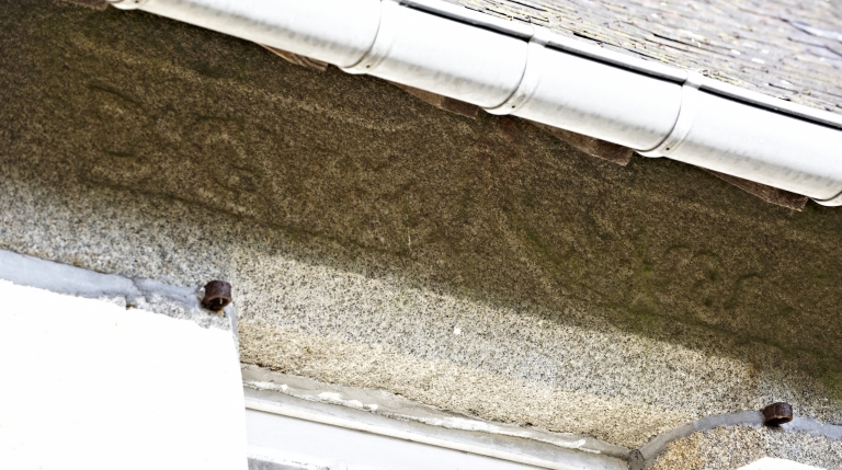 Maison 2, linteau de fenêtre sculpté.Immatriculation