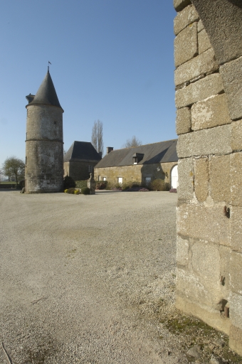 Vue de la cour, de la tour de guet et des dépendances.Immatriculation