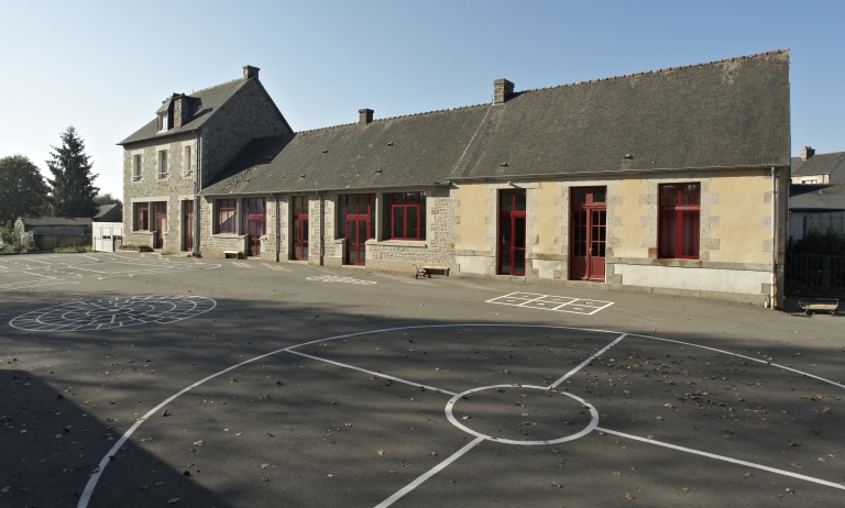 Saint-Marc-le-Blanc, école des filles (1939), façade sur cour.Immatriculation