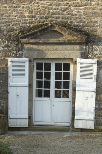 Porte d'entrée à fronton du logis.Immatriculation