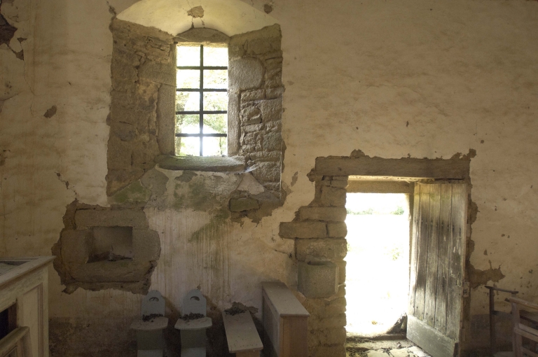 La chapelle : vue intérieure des ouvertures et bénitierImmatriculation