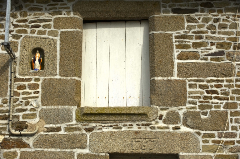 Détail de la façade : niche à statue et date portée (1767)Immatriculation