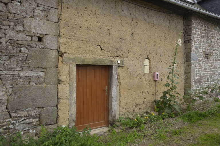Alignement de plusieurs maisons : détail d'un mur en terreImmatriculation
