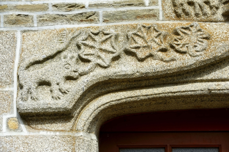 Détail du décor sculpté : animal et feuillesImmatriculation
