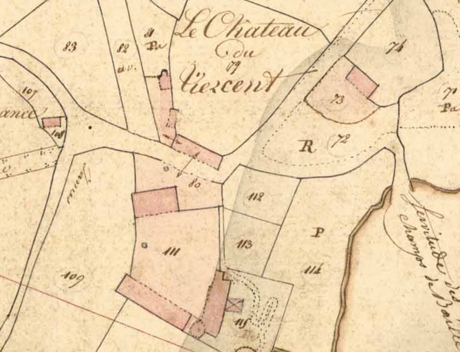 Le château du Tiercent sur le cadastre de 1833.Immatriculation