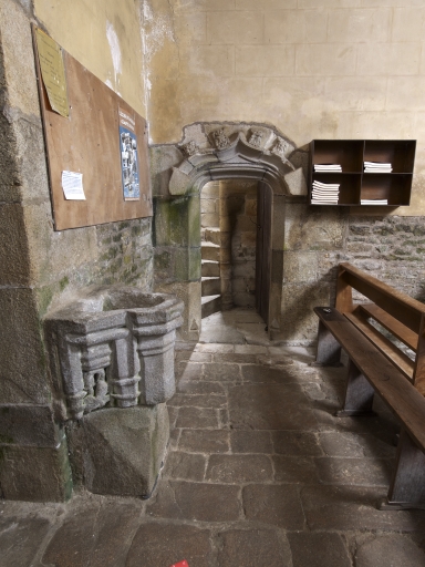Porte d'accès à la tour d'escalier, fin 15e siècle et cuve baptismale en remploiImmatriculation