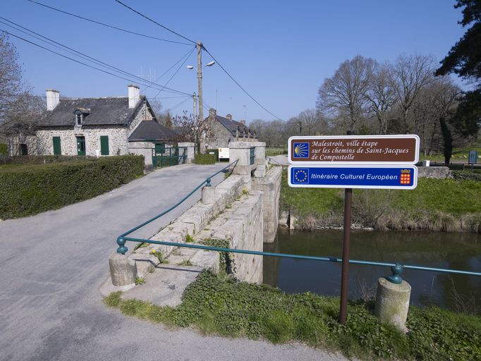 Canal de Nantes à Brest, pont routier sur écluse, la Hataie (Malestroit),