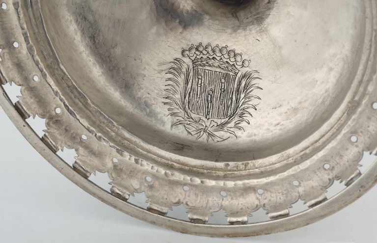 Calice : armoiries des La Bourdonnaye gravées sous le pied (état en 2011)Immatriculation