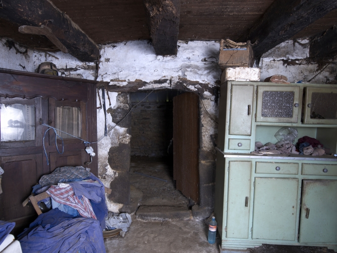 Logis à étage, mur nord de la chambre, porte de communication avec l'appentis postérieurImmatriculation