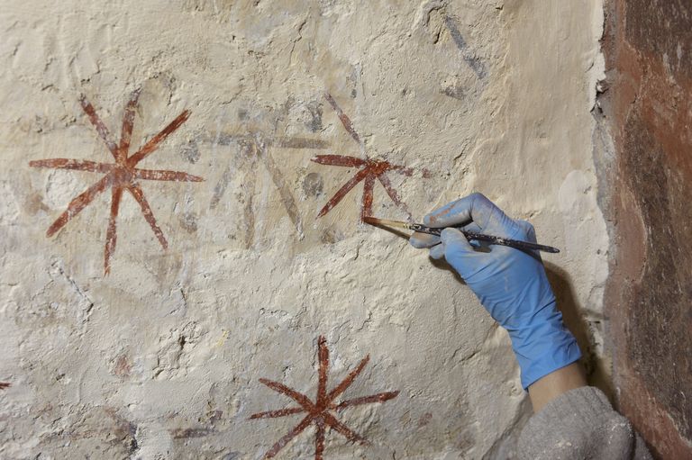 Le fond blanc orné d'étoiles en cours de restaurationImmatriculation
