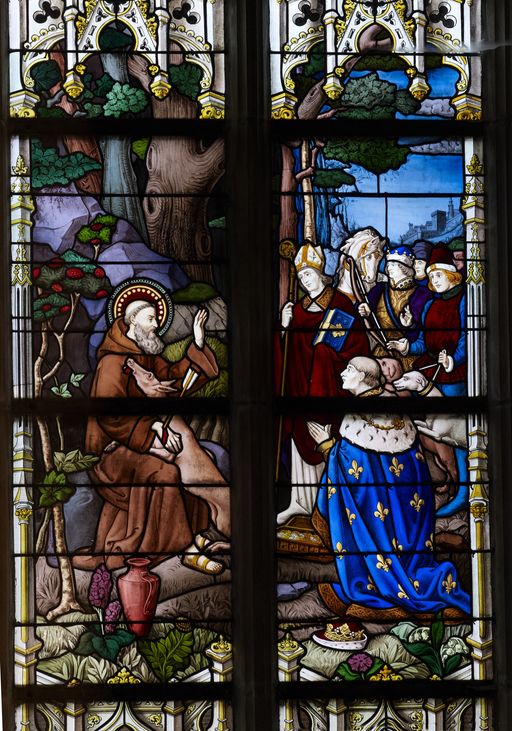Verrière à personnages de la baie 0 : Légende de saint Gilles, église Saint-Gilles (Malestroit),