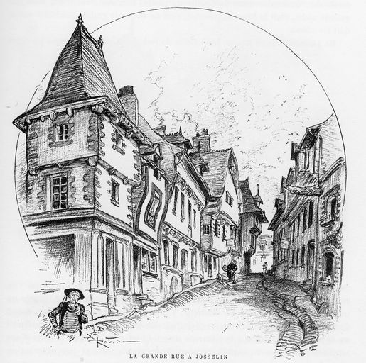 ' La Grande Rue à Josselin ' : aujourd'hui Rue Olivier de Clisson. Gravure, 1891Immatriculation