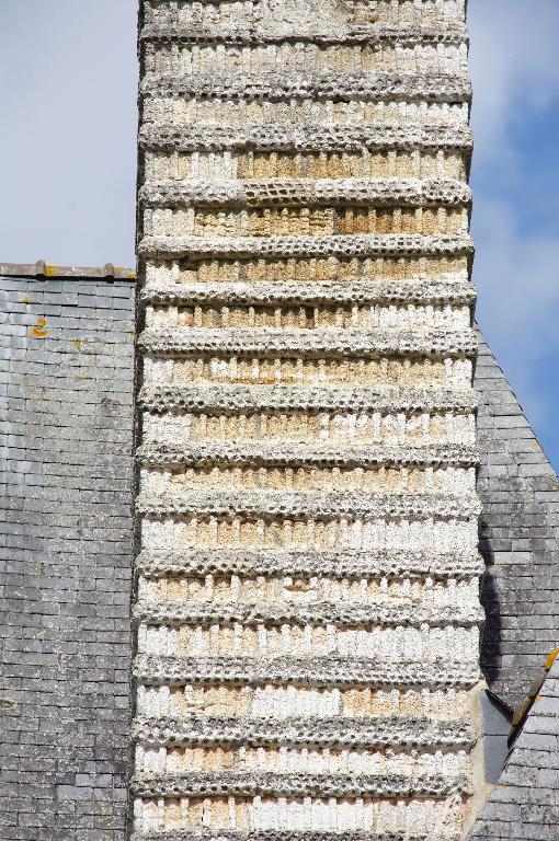 Détail : décor de souche de cheminée, cannelures interrompues par des bandeaux piquetésImmatriculation