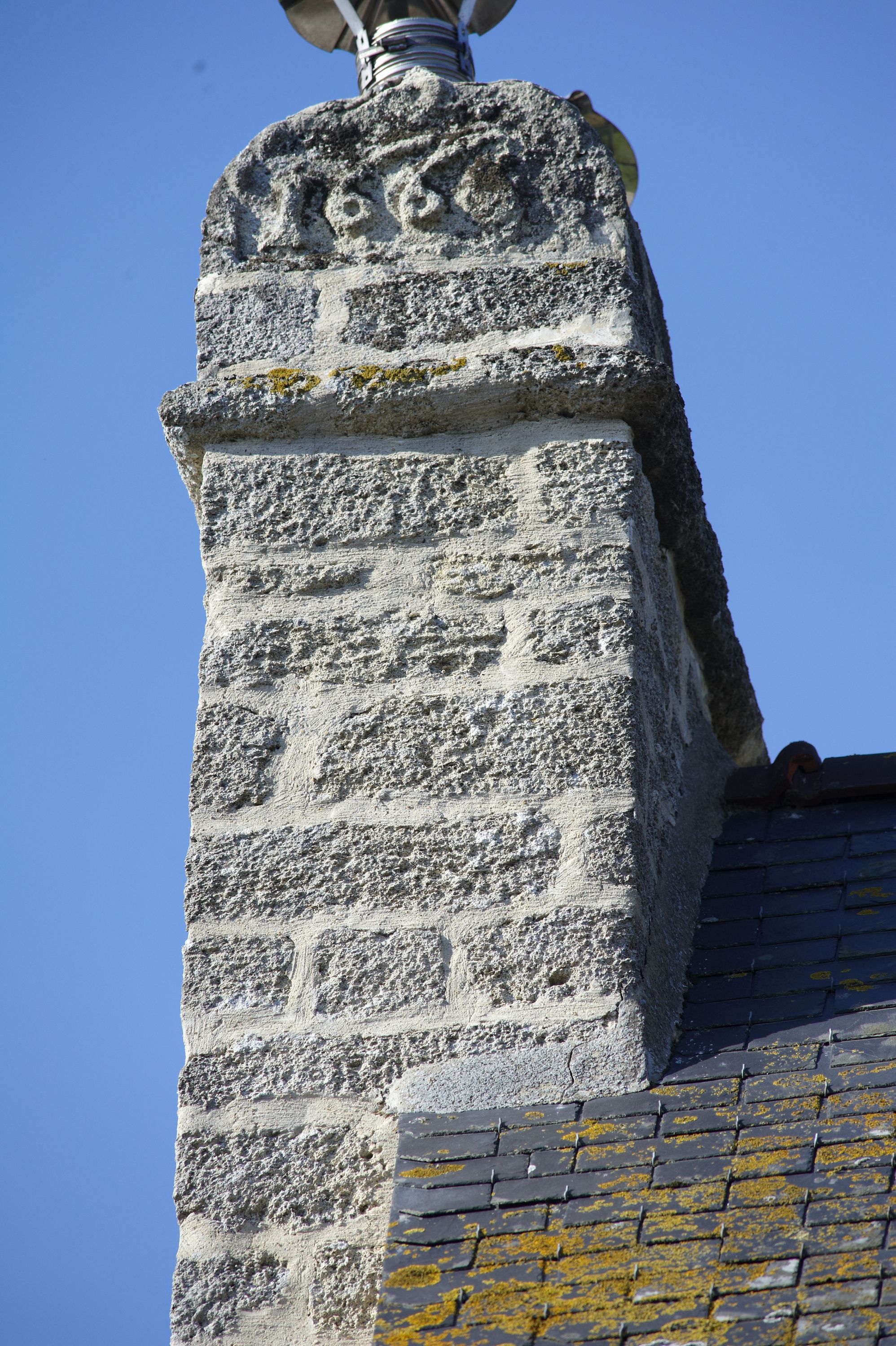 Alignement 2. Partie centrale, détail : souche de cheminée datée 1660Immatriculation